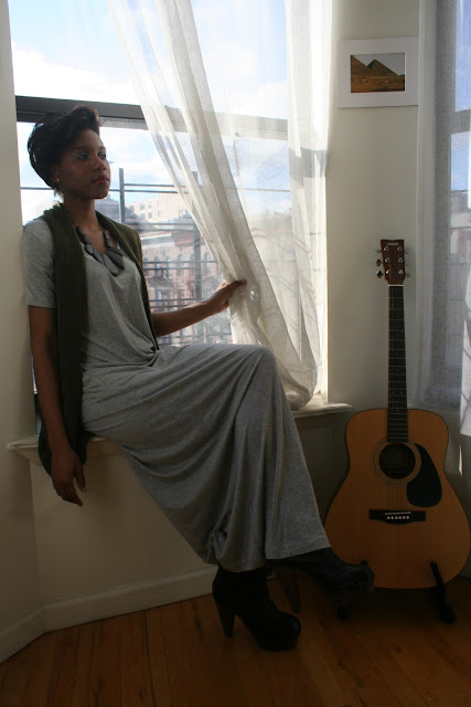 Paired this great ASOS maxi dress with a cable knit vest from Forever 21 and my favorite necklace thrifted from Housing Works Thrift Store.
