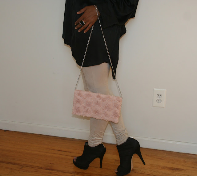 Got this cool pale pink rosette clutch from H&M and these are Chinese Laundry Sheer Peep Toe Pumps!