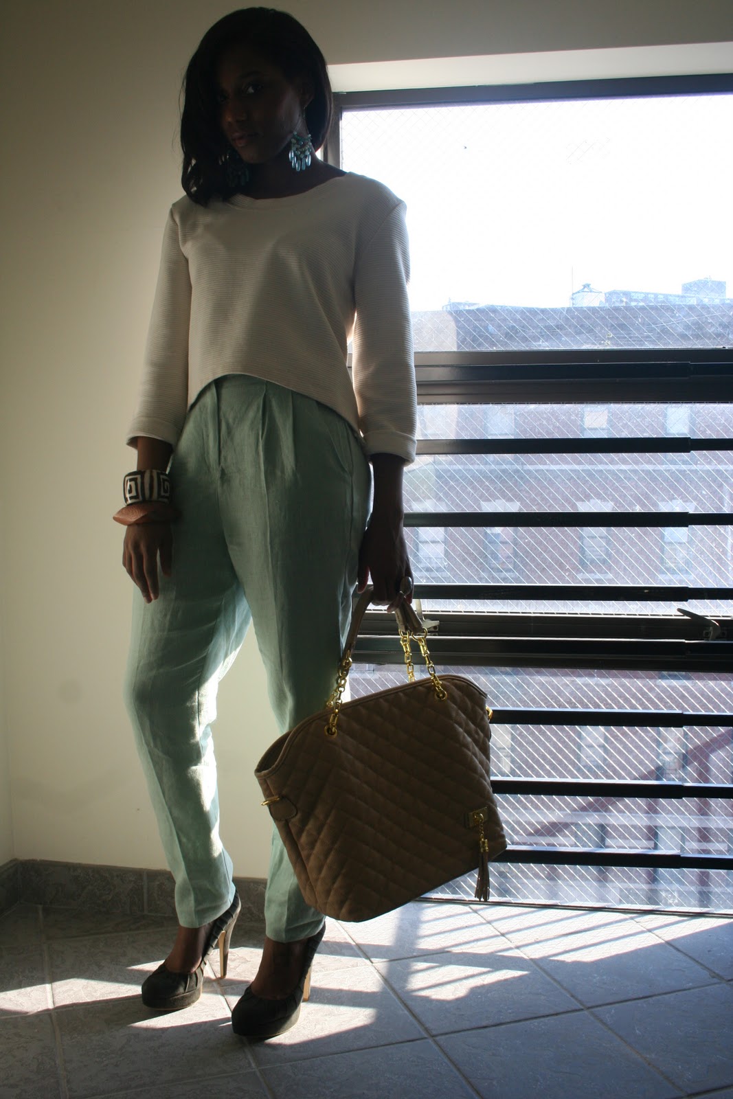 During the Winter months I find myself wearing more heavy colors such as Navy, Gray or Black. Thats pretty much the Winter wardrobe colors for New Yorkers. I needed to lighten it up a little. So I put this little outfit together and love love love it. I plan on wearing it to Spain in May…I know I think waaaaaay ahead of what to pack lol