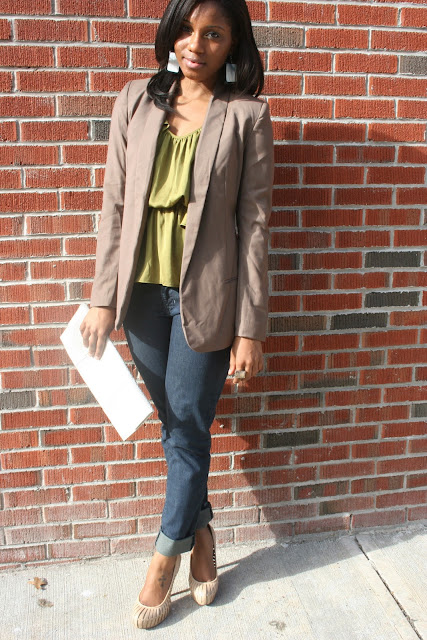 great outfit, love the earrings and that clutch is amazing the blazer looks great on you!