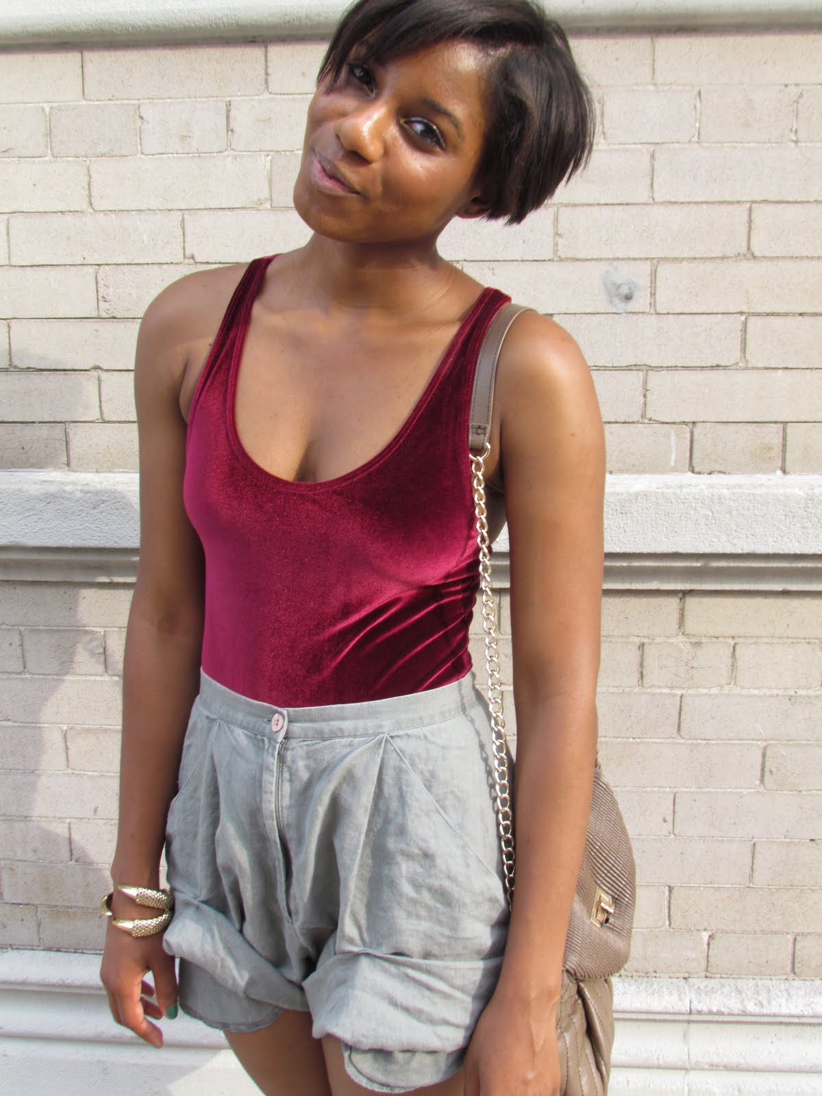 totally digging this look..and u stapled those shorts…so cool…Love how they look with that super gorgeous velvet body suite!!