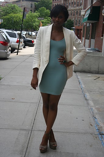 I have had it with my job and not being able to wear what I want…so I always push the lines a bit, tastefully of course. I get looked at weird but sorry, can’t wear cardigan, greys, browns and pearls all the time! Loving the blue body hugging dress!