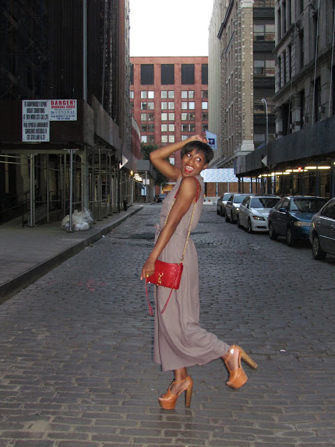 I spy downtown NYC and am loving it!!! Your red purse gives your look the perfect touch of color! Thank you so much for stopping by my blog and for your sweet comment about my mother! Fun fashion blog you have!