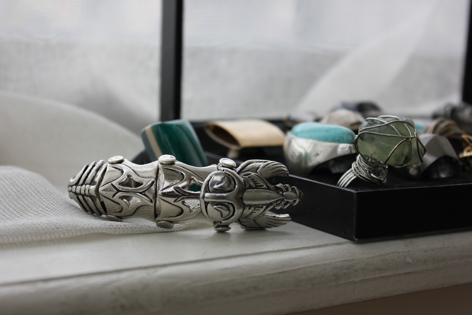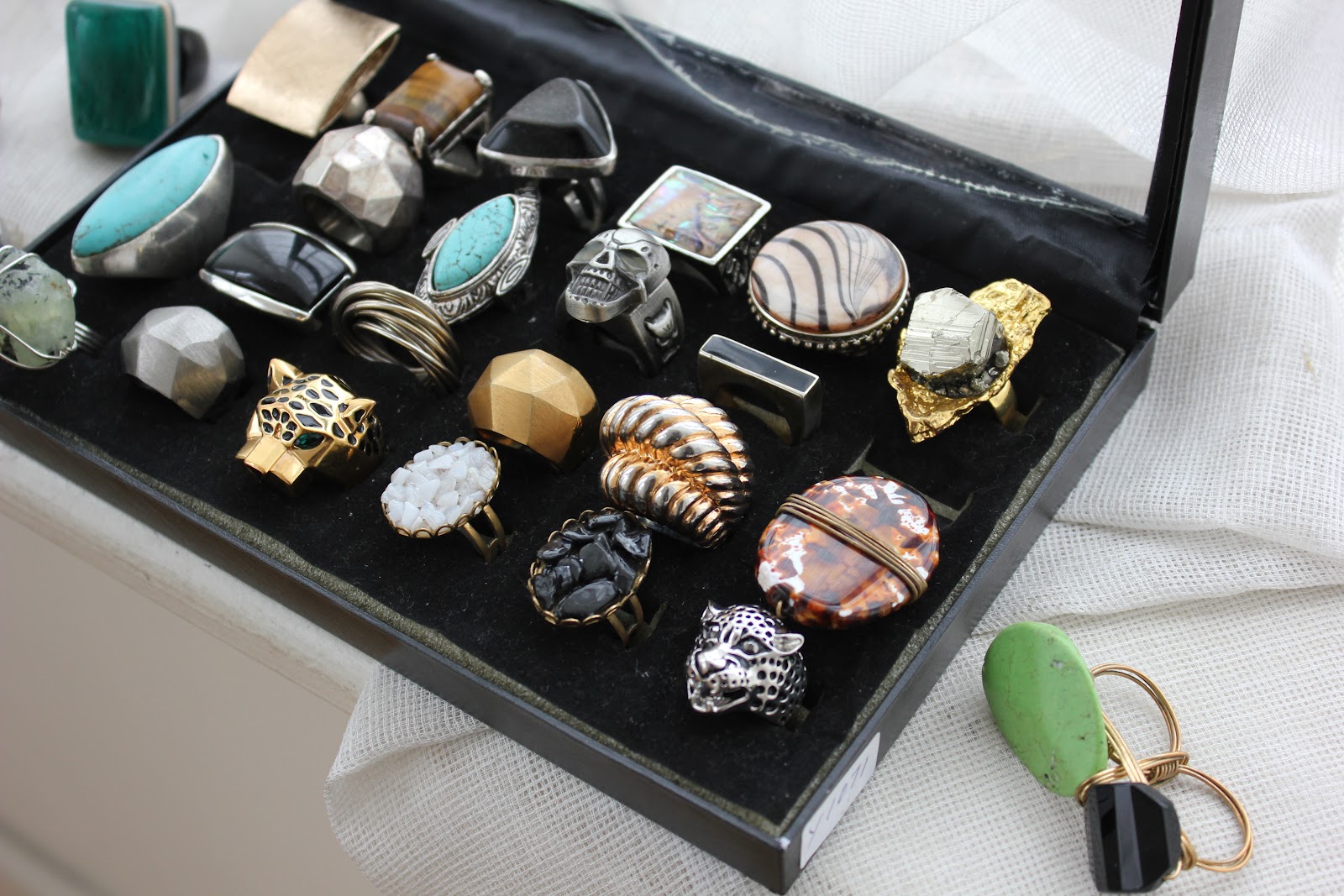 My collection consist mostly of cocktail rings, a lot of which I pick up while thrift shopping.