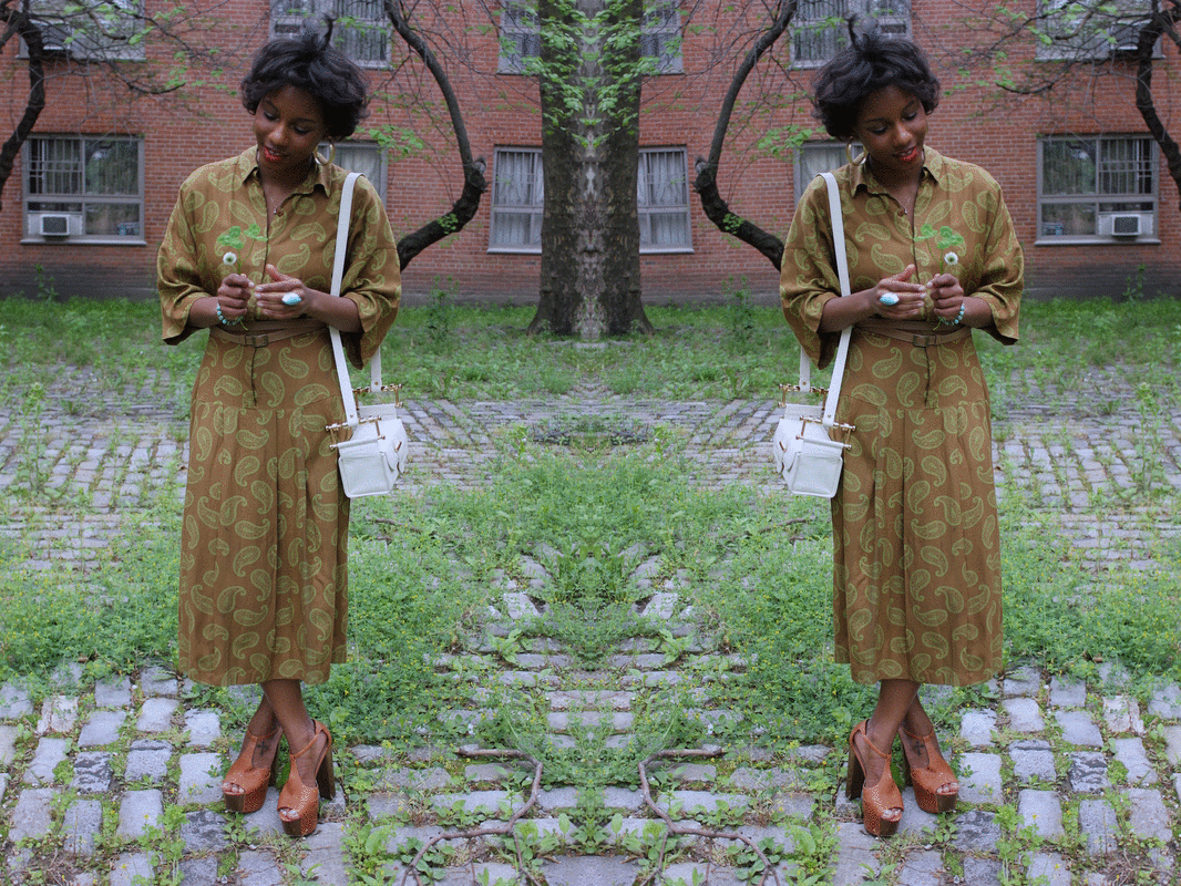 Dress: Vintage Thrifted | Shoes: Jessica Simpson Dany | Bag: Thrifted from Brooklyn Flea