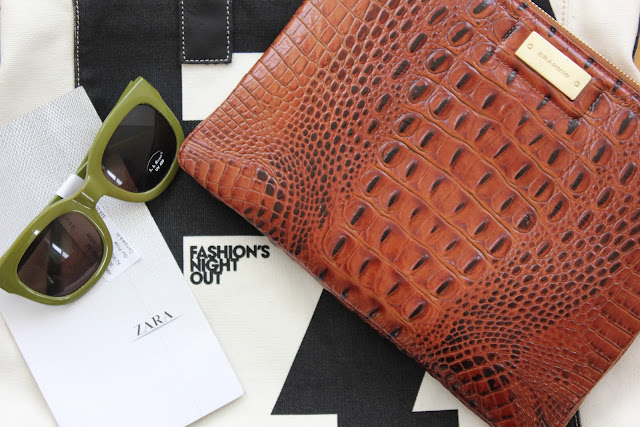 for an official Fashion Night Out Tote, $50 Zara Gift Card, a Brahmin iPad case/clutch and a pair of A.J. Morgan Sunnies just like these i wore in a recent post