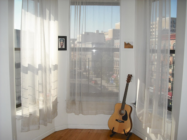 This is my favorite part of my apartment. My huge bay window with 3 large windows. So light and airy. I also like to keep my guitar on display here and pictures of ancient egypt which I’m obsessed with. I like to sit here and drink a cup of acai berry green tea in the mornings.