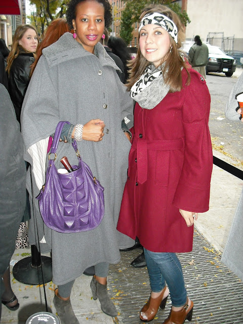 I’m inlove with this fashionista’s gray wool cape and the clogs and matching hat and scarf of this chic maven!