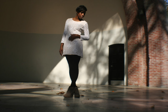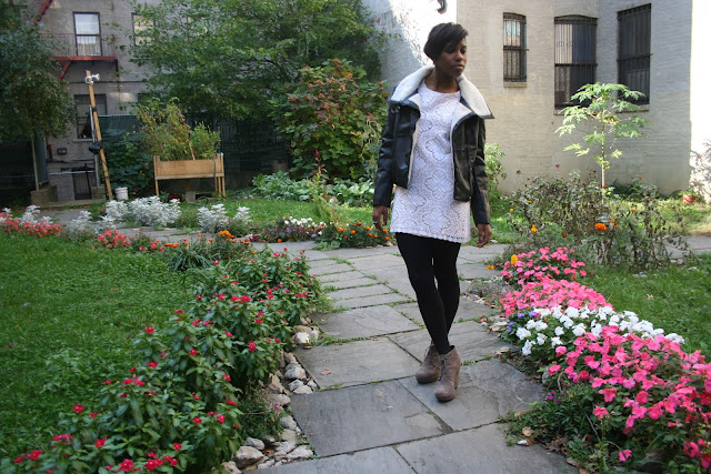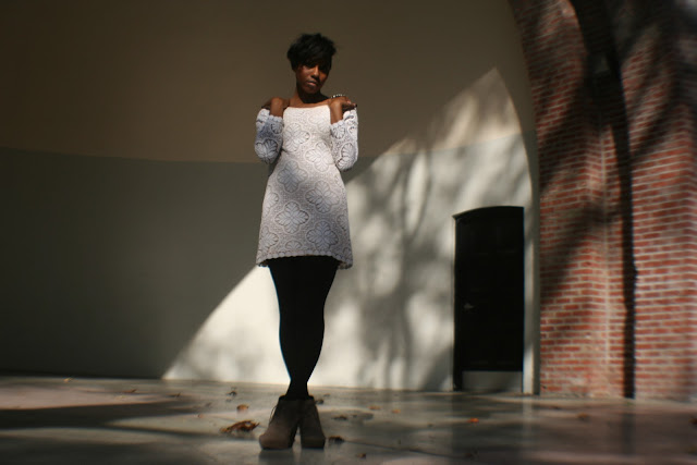 This is my favorite vintage 60s lace dress that I got from Vintage Thrift last year. Lace can be worn year round and so can WHITE! THROW OUT YOUR NO WHITE AFTER SEPTEMBER RULE! Give it some edge with black tights and a leather jacket!