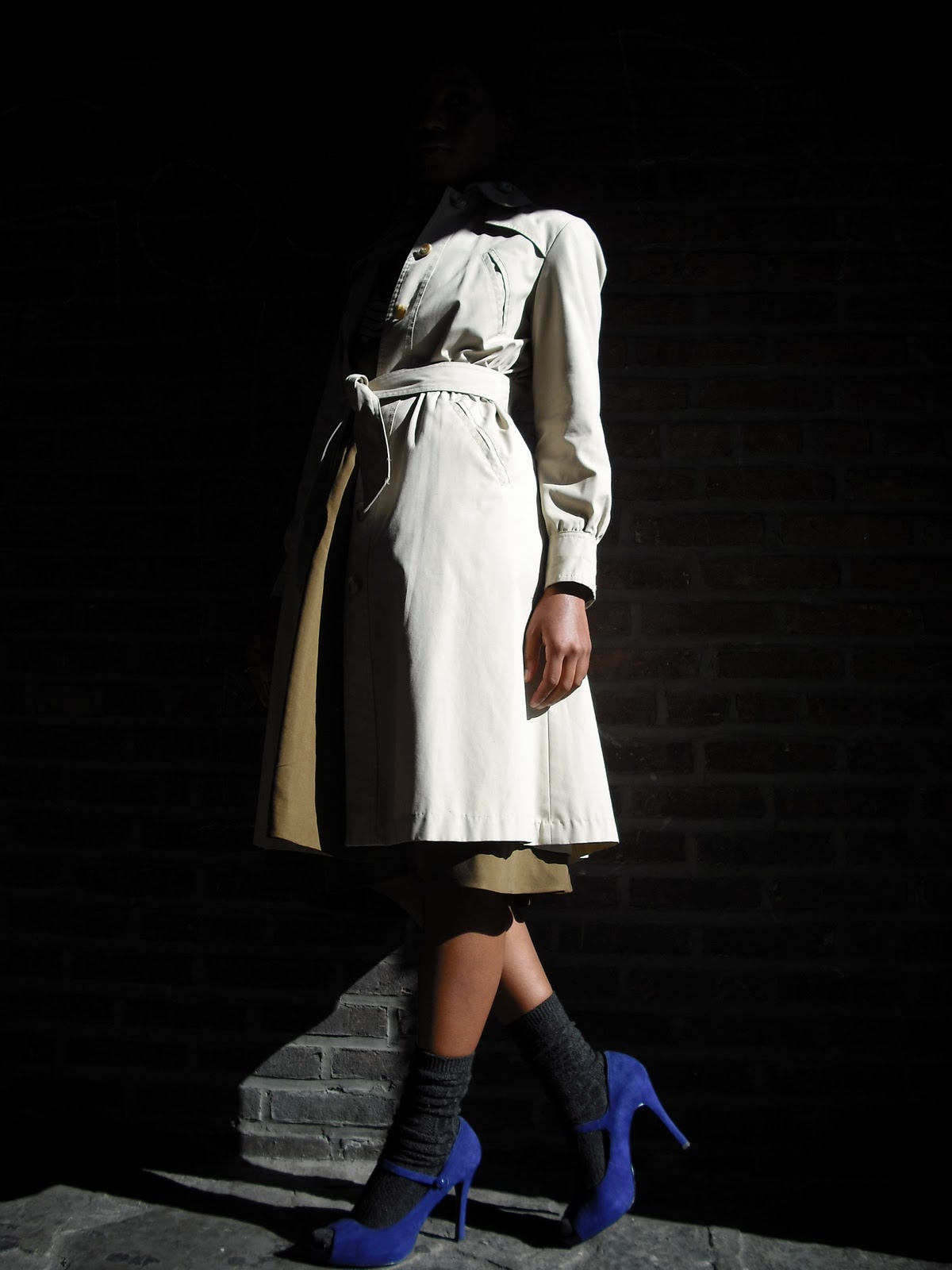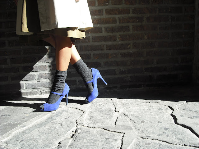 LOOOOOOVING the blue suede against the tan trench coat!! and the skirt is very “Hepburn”-ish! LIKE!