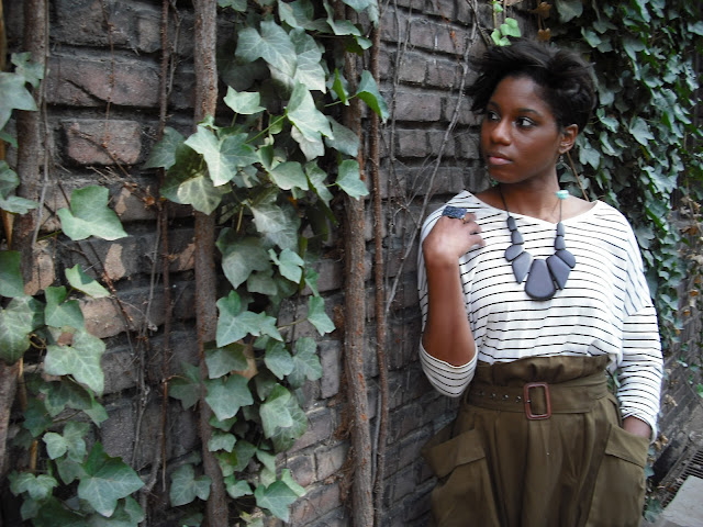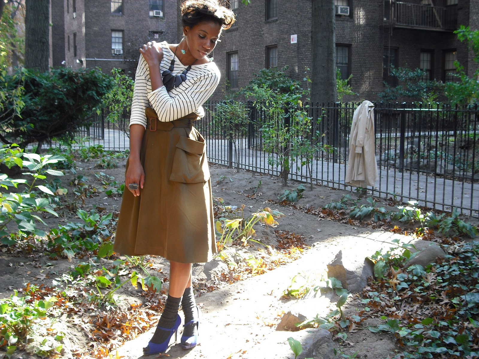 Shirts with strips are definitely a must the Fall/Winter. Check out some other can’t live without trends here. Love the necklace??? Check out Housing Works Thrift for more amazing necklaces.