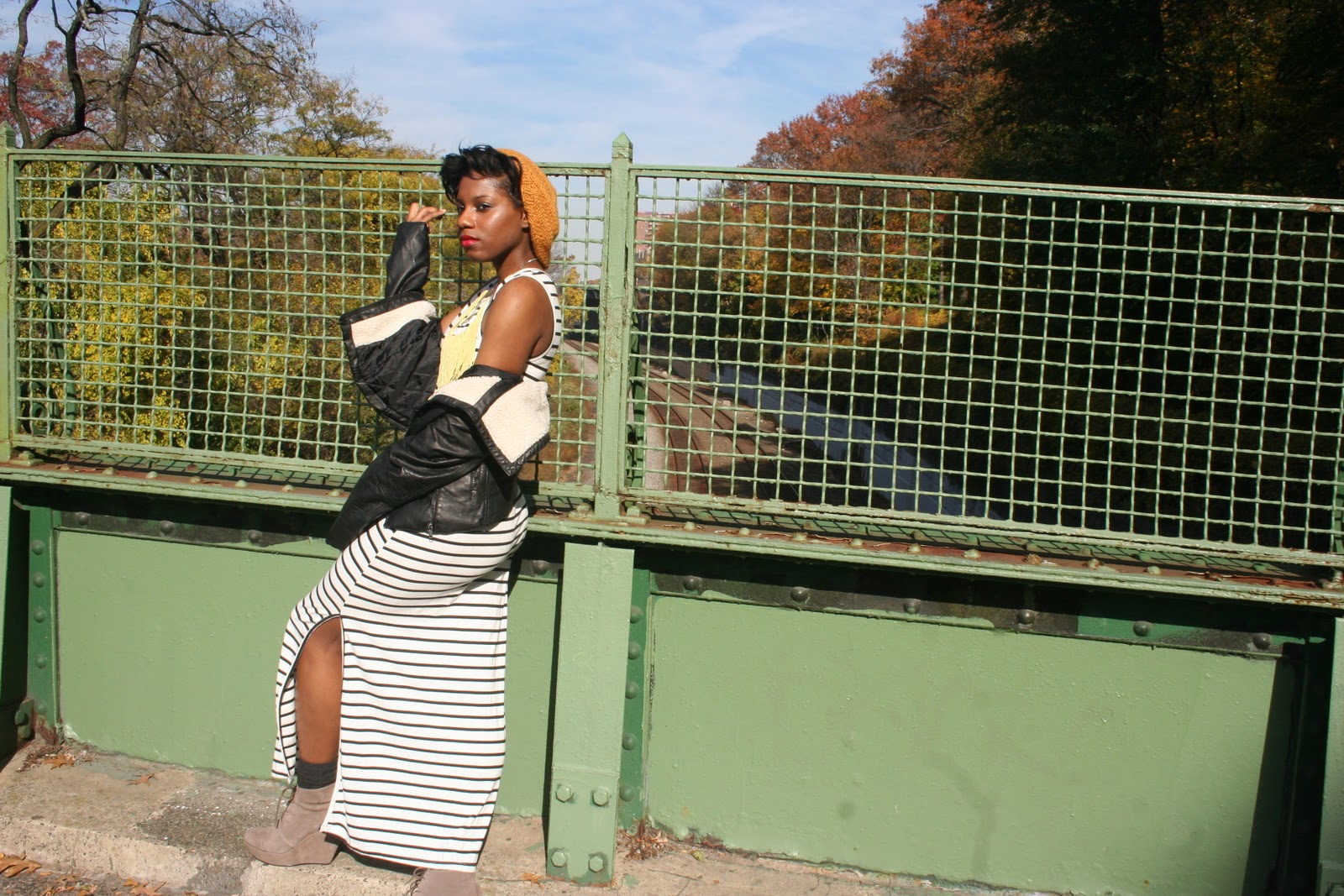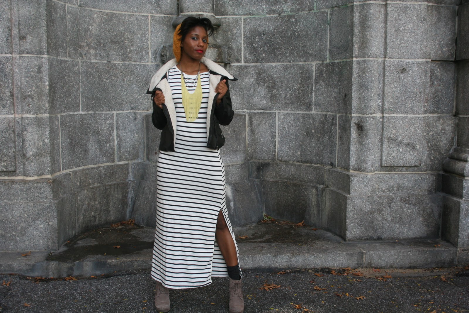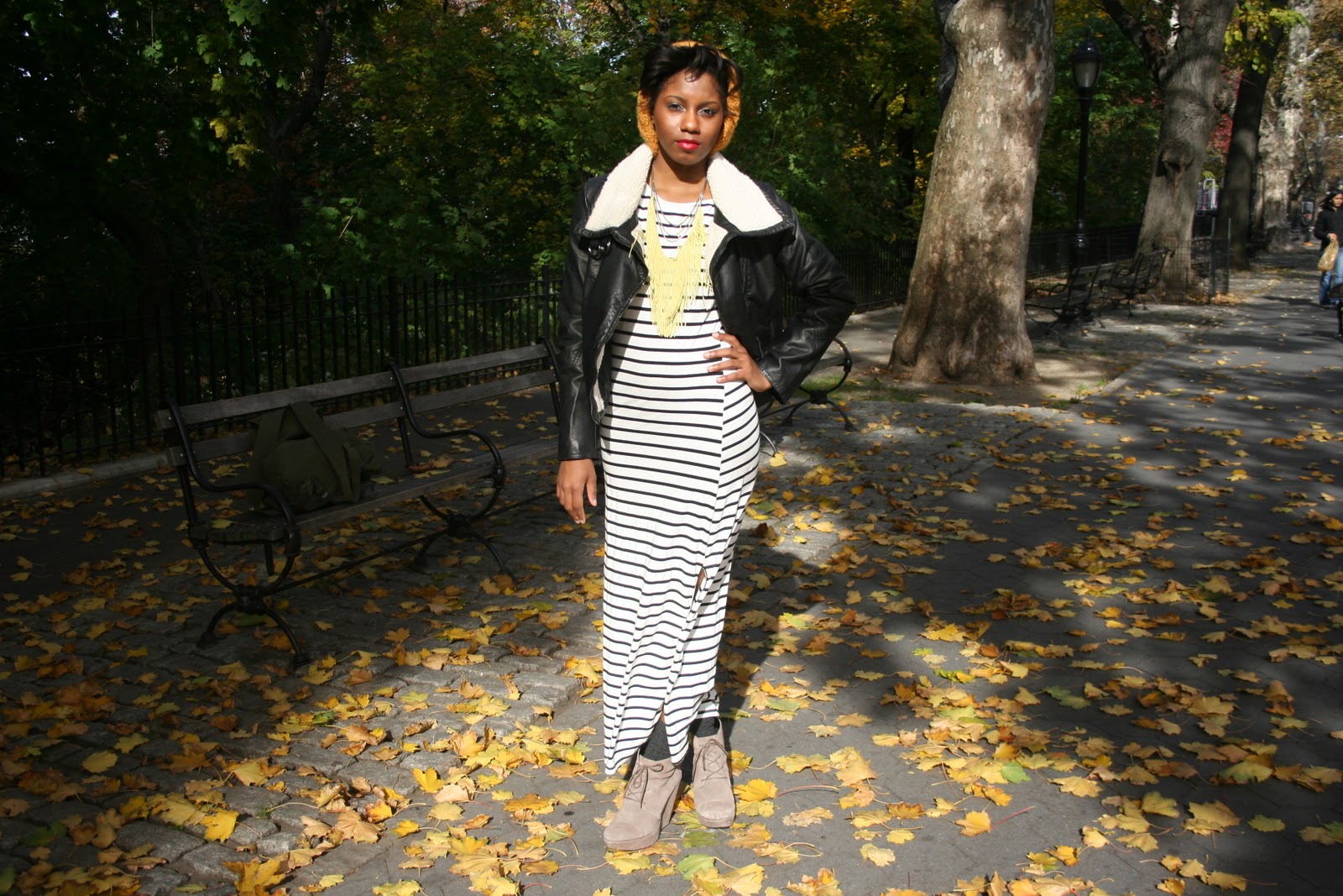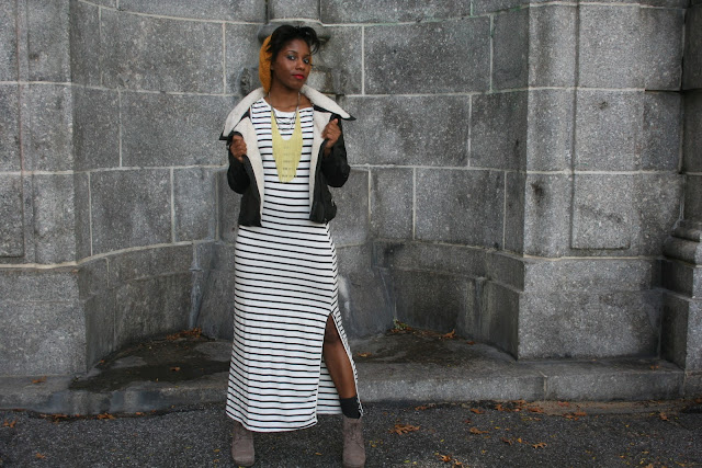 Great outfit! A horizontal stripe maxi dress would look absolutely atrocious on me but it’s really fab on you 🙂