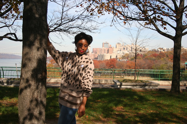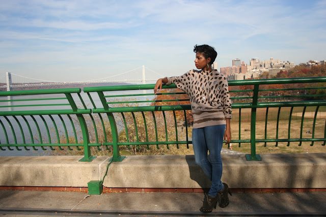 I was gonna say – the day you took these photos must have been a LOT warmer than today, lol. Both the sweater and shoes are very chic. I’m a big fan of animal prints.