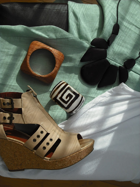 Once again I have incorporated tribal prints and natural wood necklaces such as this one I got from Housing Works Thrift Store here!!!!!!!