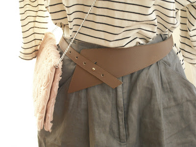 I love these linen army green shorts I thrifted from Goodwill last summer for less than $5. They are super comfortable and go with just about anything. I like paired them with this soft pastel pink in the Top Shop Chiffon/Suede wedges. Also paired this outfit with a great vintage belt I got here at Beacons Closet in Brooklyn during a thrifting trip.