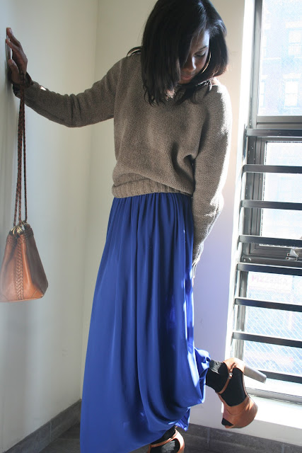 I love wearing maxi skirts in the Winter. They are so whimsical. Especially these by American Apparel.
