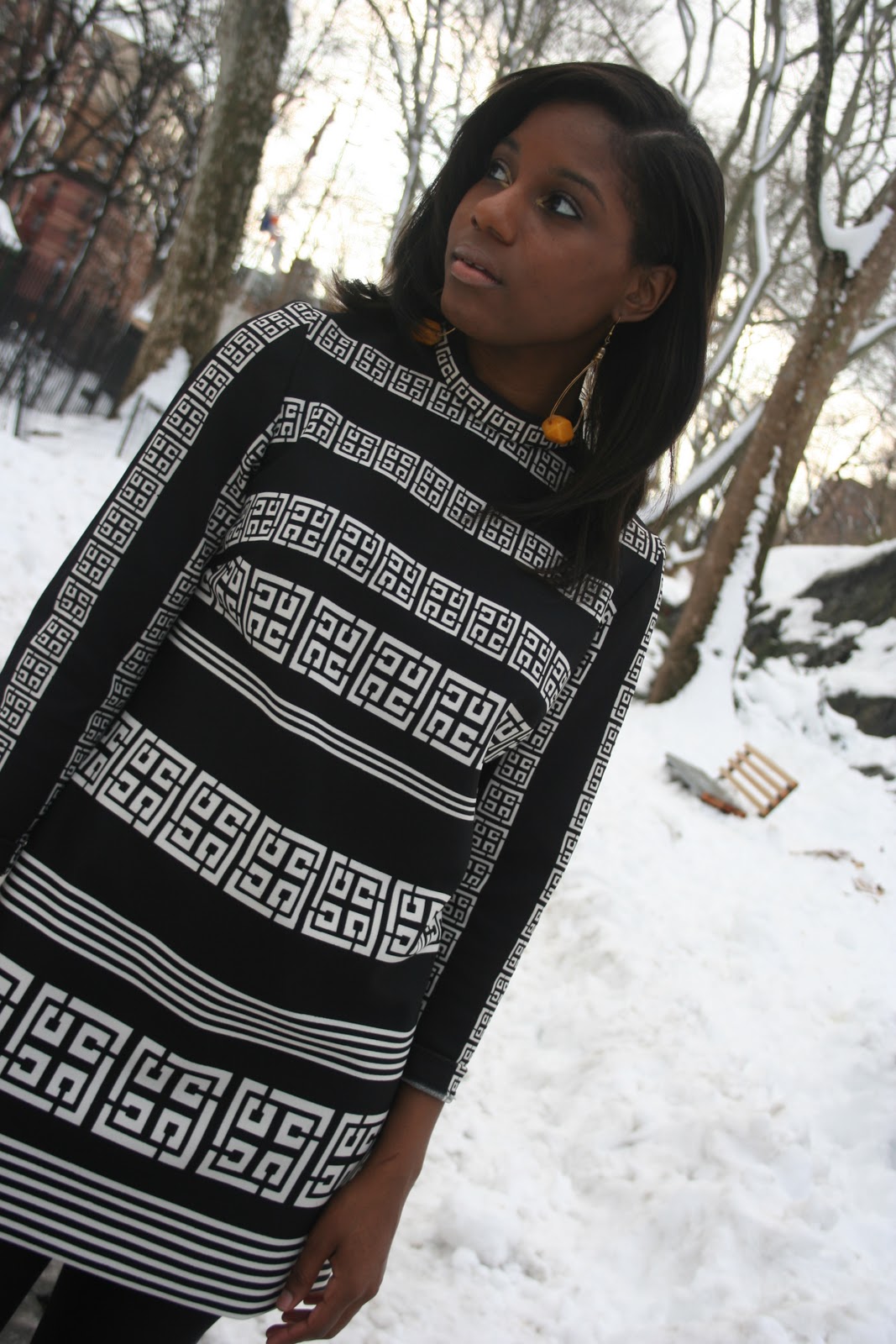 love the geometric-tribal design of the dress, good choice that you made a mini. I’m liking the edgy look to your recent pieces.