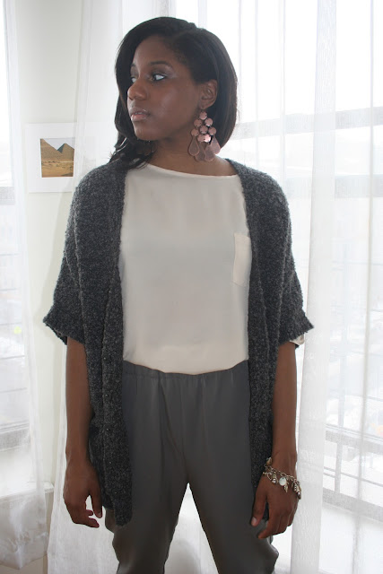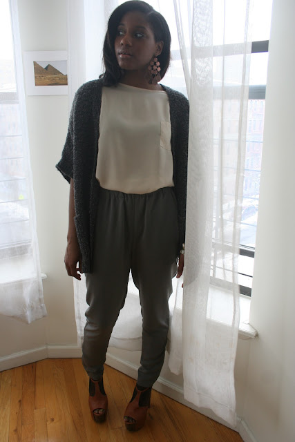 I love these soft green harems I recently got from H&M. The color is so soothing. I paired it with a cream top and one of my favorite comfortable cardigans.