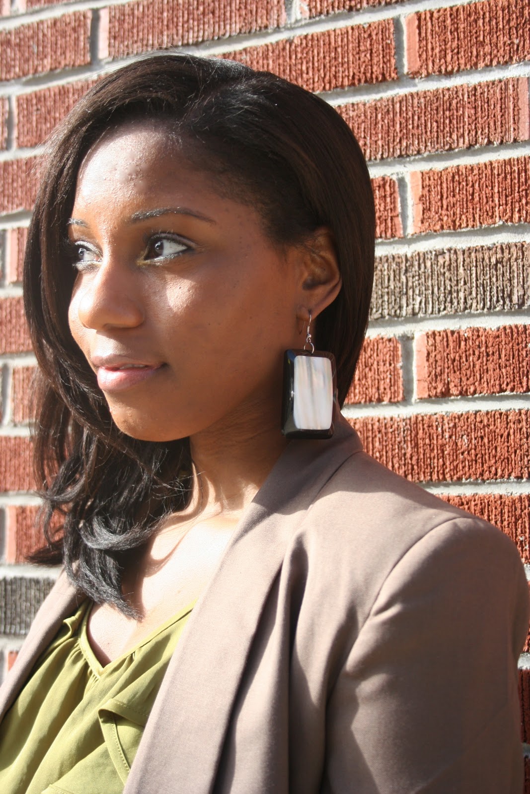 Very pretty! Love the earrings and blazer.