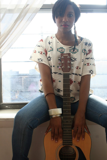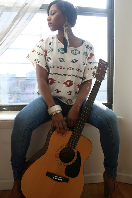 Cool, I love that Aztec top. My ex boyfriend used to play guitar without any lessons even. Wild huh? I can play the drums and the harmonica.