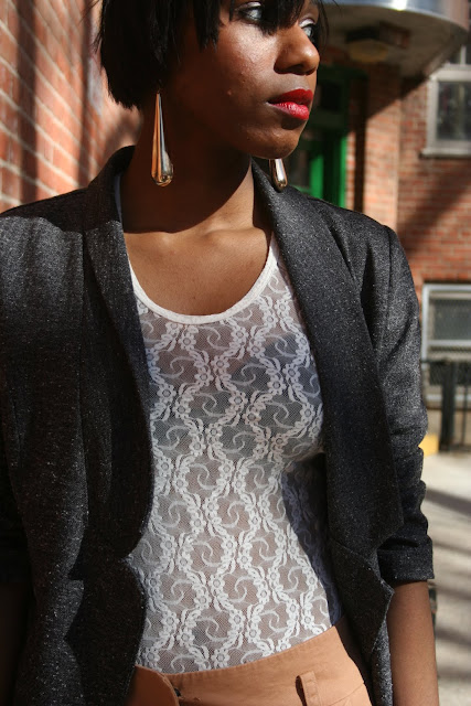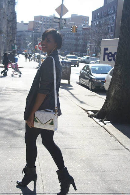 I love lace. I also love toughing it up a bit with something black. All lace is just too frilly dilly for me. I’m glad I got to pull out these awesome DKNY boots I picked up at DSW last Fall again. They are super comfortable. I am inlove with this purse. I think it’s my new favorite of all my purses which is weird because it’s small. I’m used to wearing huge “fit my entire life inside them” pocketbooks but lately I like small shoulder bags and cross body bags. I guess I’m maturing more. Really all you need is cash, your metrocard and MAC red right..haha