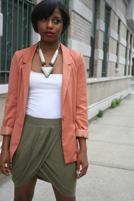 I love your blazer and the colour palette of this outfit- this shade of pink works perfectly with olive green, well done! x