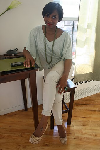 I finally found the perfect off white jeans. I’ve been craving a pair since a few summers ago when I saw Beyonce is a smoking hot skinny pair. I hate plain jeans. I need some excessive stitching, weird designs, ankle zippers and the like. These pants met all my qualifications as well as being only $27 after a 30% discount at Loehmann’s. See more jeans I love here!
