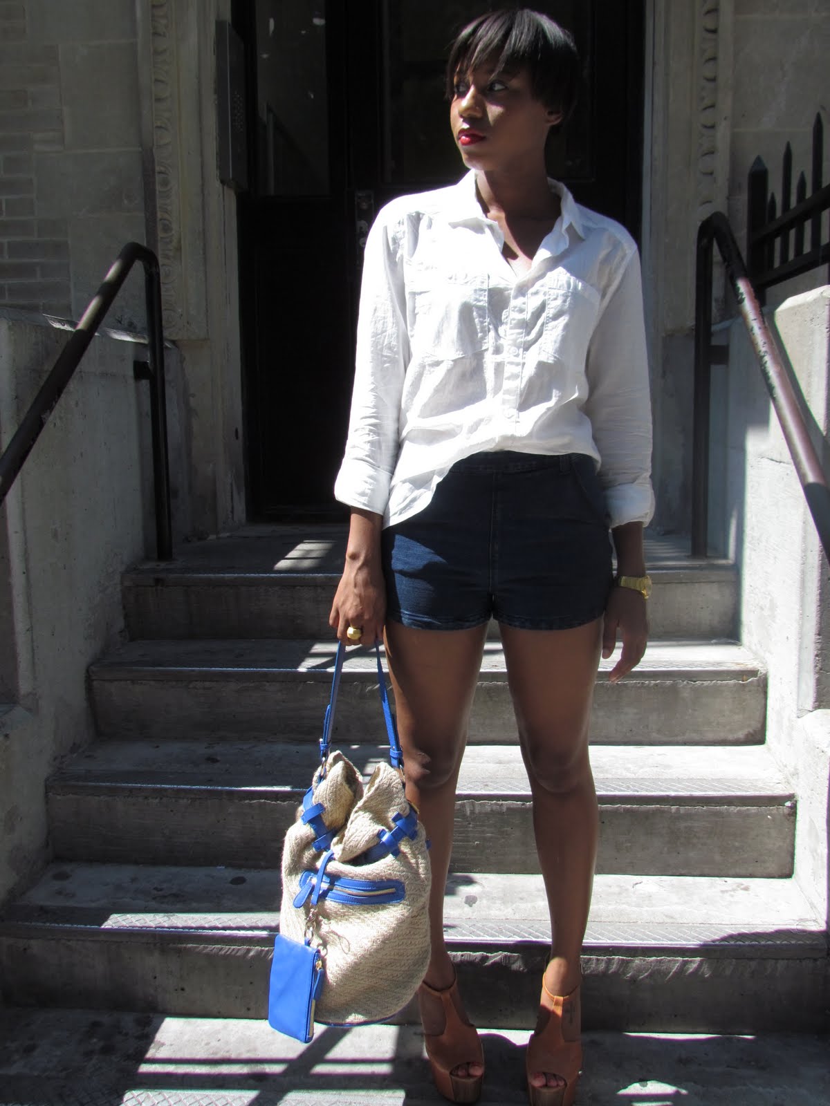 i LOVE the white shirt tucked into denim shorts look – very classic 😀