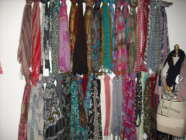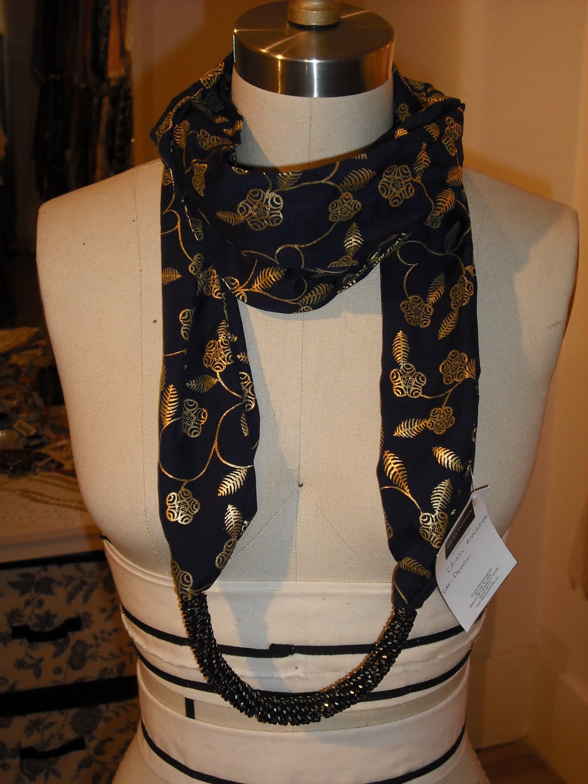 Micky London has collections of scarfs, scarfs combined with necklaces as well as jewelry. I felt like a kid in a candy store. Here are some of my favorite scarfs.