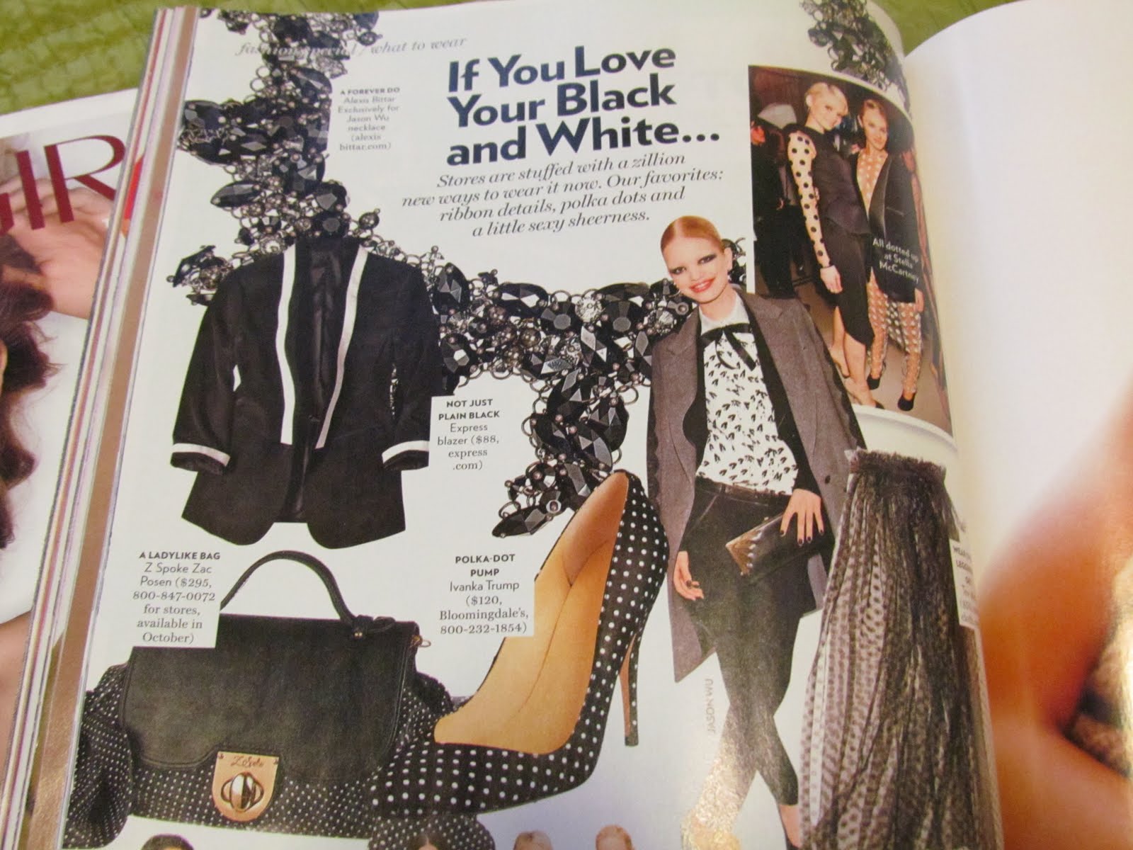 I’ve been thinking about crisp black and whites for Fall sophistication. Saw this spread in Glamour a day after I got this amazeballs BCBGeneration Jacket…I must be on to something.