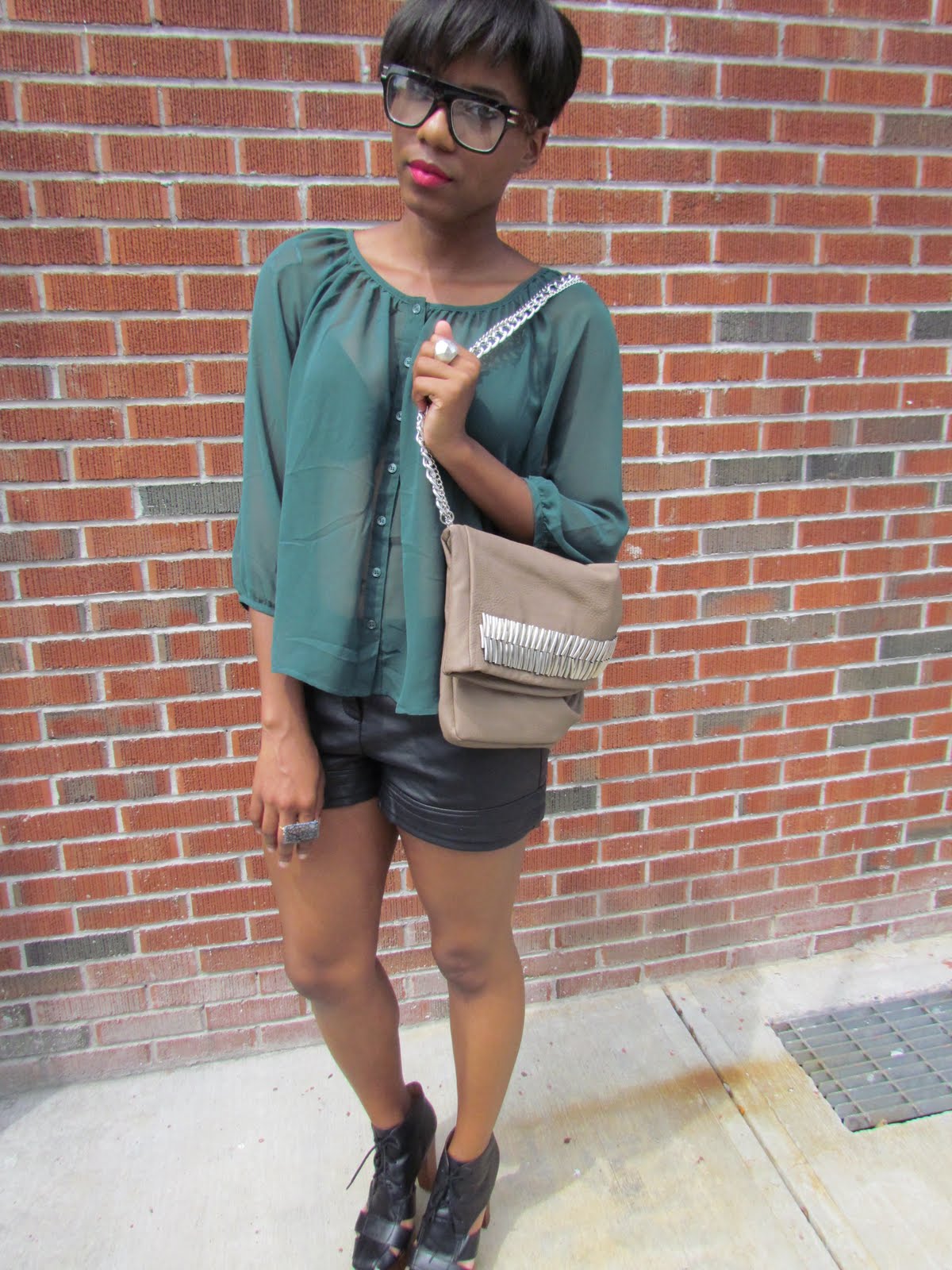 Those leather shorts are so adorbs! I love the contrasting materials…leather with chiffon..so perfect!