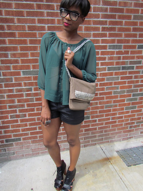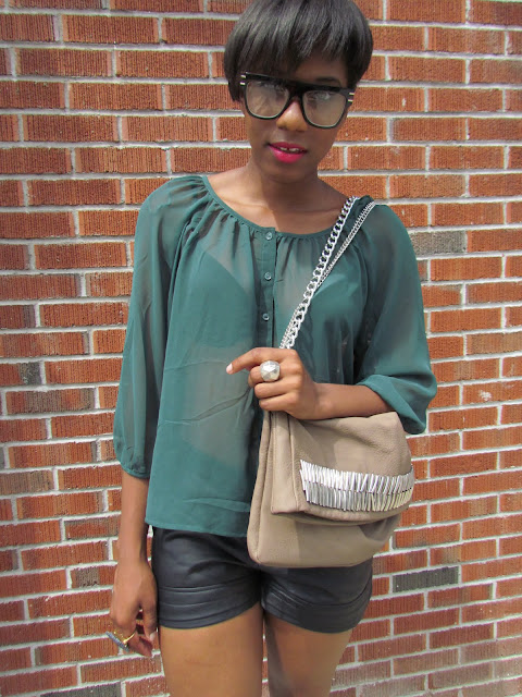 I adore everything from your ring to your blouse to them amazing shorts! LOVE! And I know wearing glasses makes me feel like a diff person too! 🙂