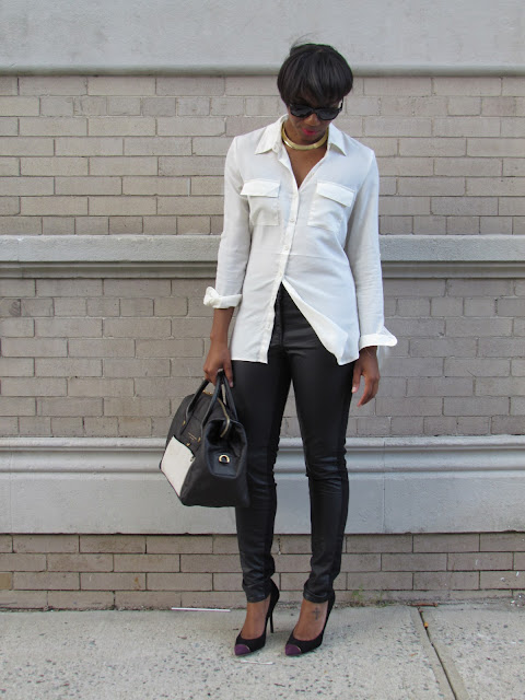 I thought it fitting to wear a few pieces I got with my Saks gift card and also to incorporate a piece of ALDO jewelry. I am so inlove with these leatherette leggings that I picked up a few days ago at H&M. They are peeeeeeeeeerrrrrrrrrrrrfect and cost next to nothing.