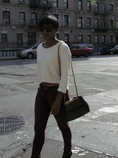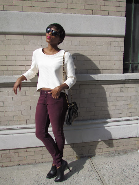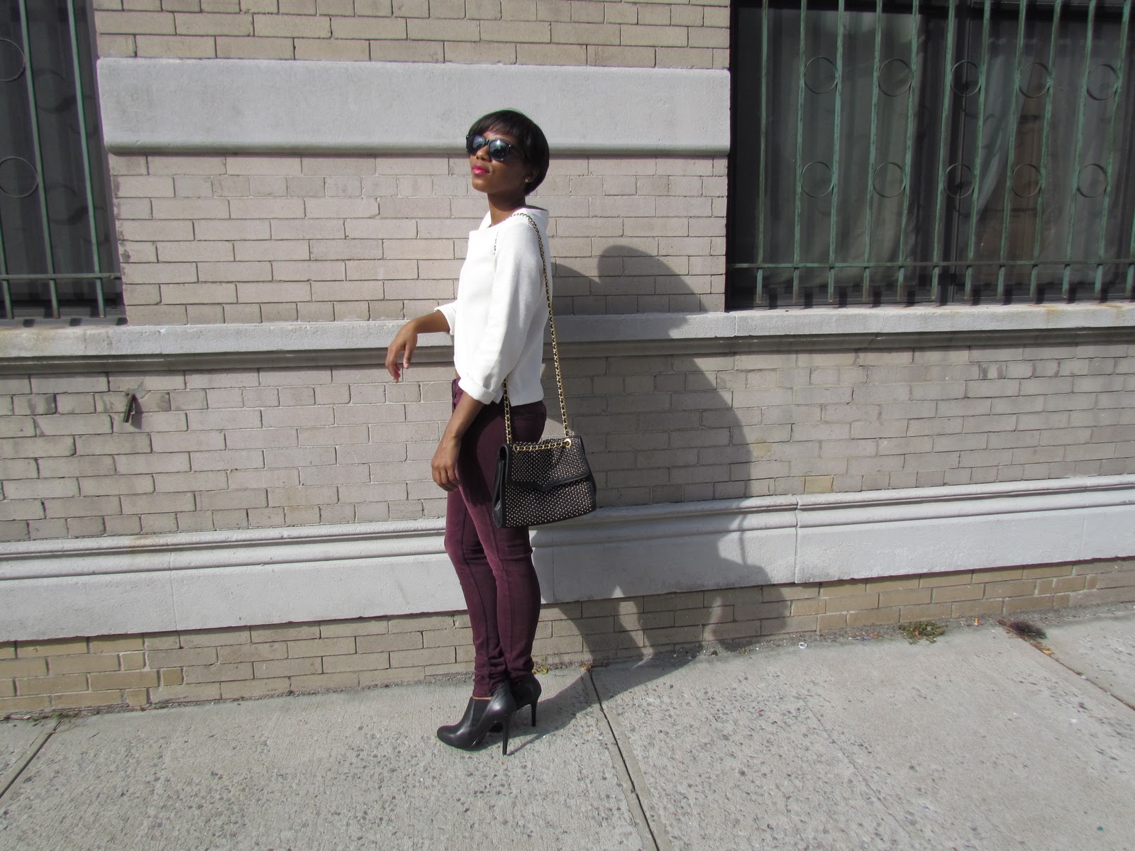 Burgundy jeans are amazing! love the shape of those shoes too x