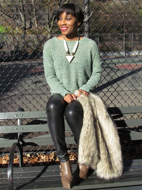 So who else is rocking the faux fur this Winter? I also got to rock one of my favorite necklaces. I got this necklace around this time last year at the Holiday Market in Union Square. I was just down there a few days ago and got the best Waffle from Waffles and Dinges…complete with