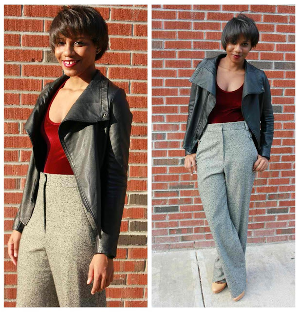 Wow Monroe, what a nice switch up. Ilove these pants with the bodysuit. So elegant.