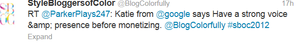 I had such a great time at the conference and learned a lot especially about working with brands and monetizing my blog. Here are a few great tidbits of information via twitter.
