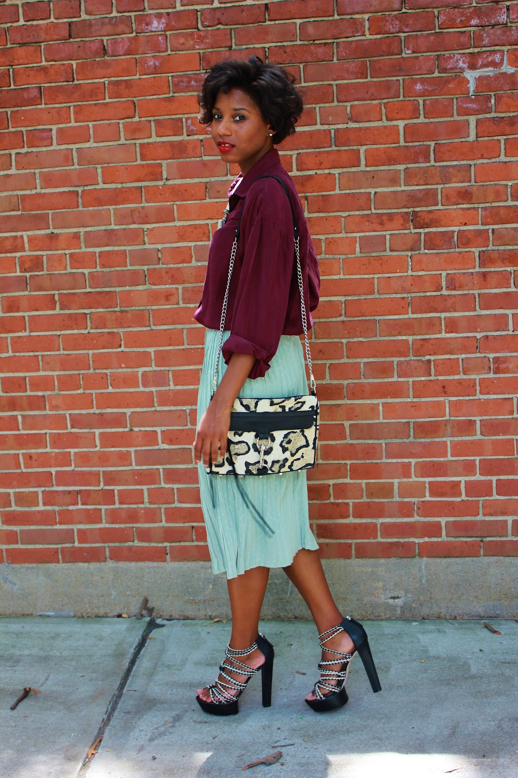 Loving the mint and maroon color combo! That statement necklace is awesome!!!
