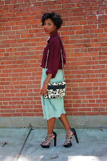 thrifting can be hella rewarding and fun! i love it when I find great pieces. i was drawn to this skirt because of the pleats and the color. i have a similar vintage skirt here. anywho this skirt came with this top that a rocked in last weeks post with an American Apparel skirt.