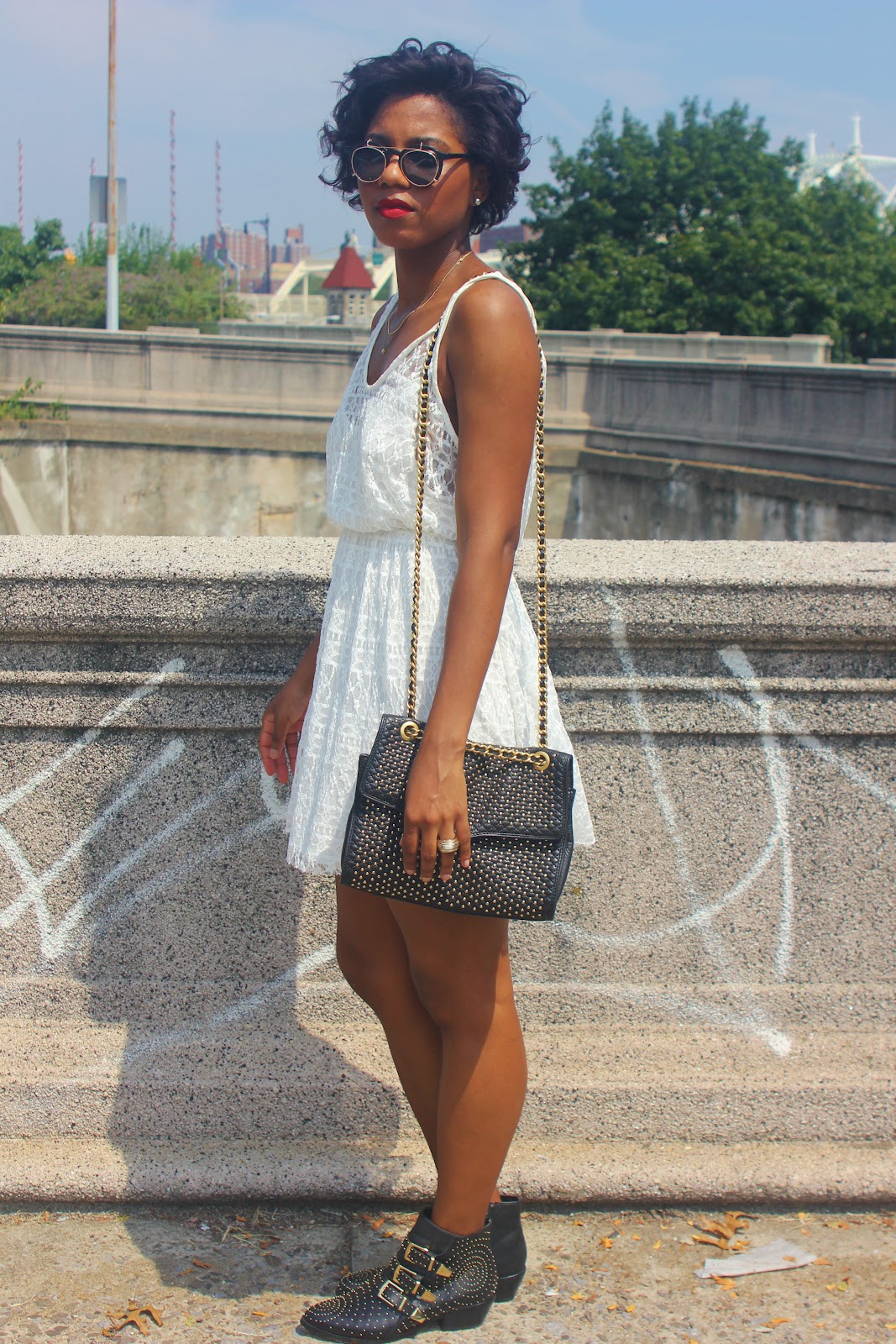 Love all the studs – they look so good with the white dress! x