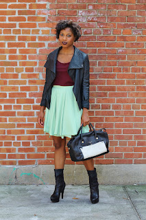 Yes, leather is nice, but I just LOVE LOVE LOVE that mint skirt. It’s so fun and unique.