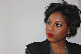 Well it isn’t actually studded but it has that studded look with the use of beading. I love love love this beaded blazer from Lulus.com. Its eye catching and unique and the perfect topper to any outfit. I wanted to let the jacket shine so I went with a basic all black look with my new H&M jeans and also a great eye popping pair of red pumps from Lulus.com as well.