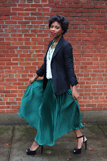 You did an amazing job building an outfit around the necklace!! The green is gorgeous and I love the skirt. This necklace would go great with a mustard tunic that I have. I love how mustard and green look together. I would wear a black lace skater skirt (tunic will be tucked into the skirt), black tights, and black pointed toe pumps. The green will play off the mustard and be the focal point of the outfit!